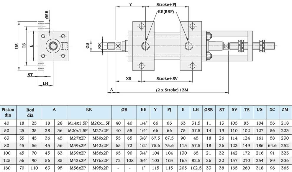• Bore sizes : 40mm to 160mm
