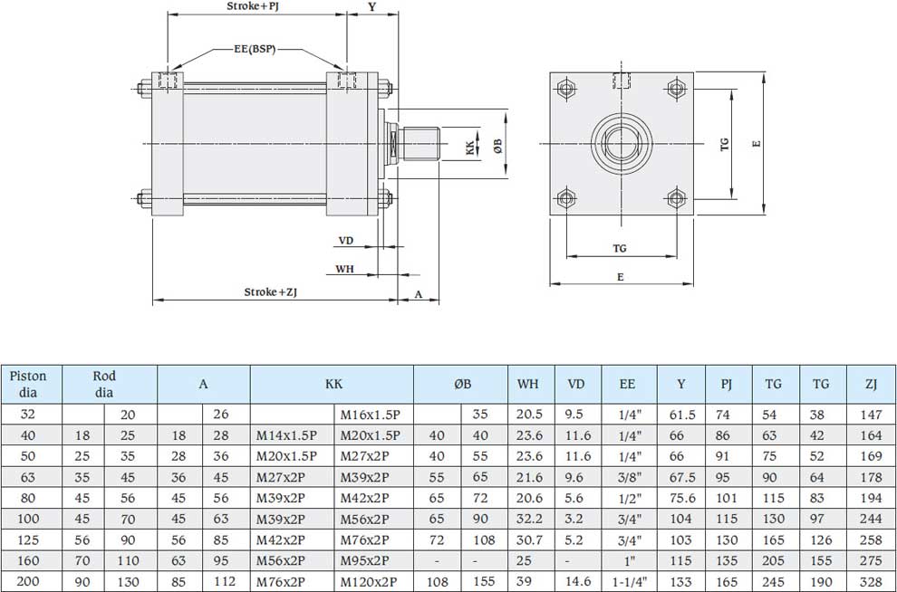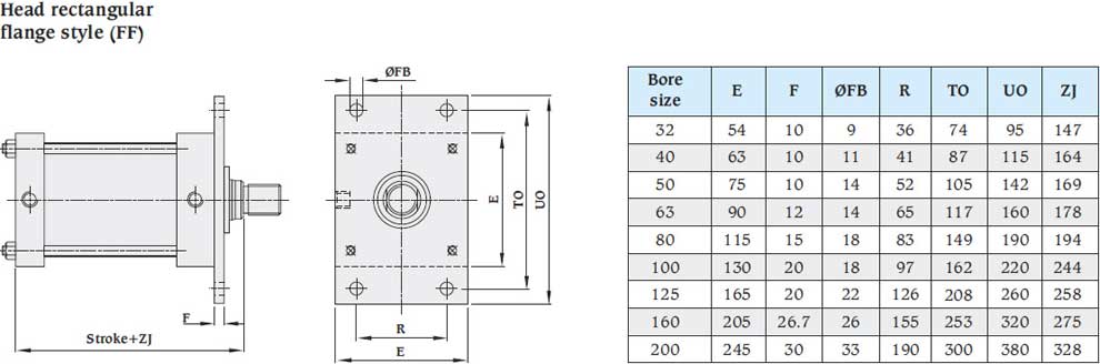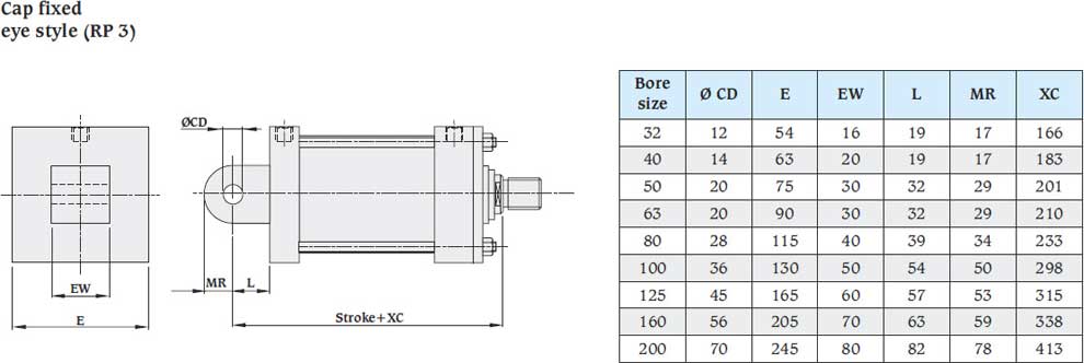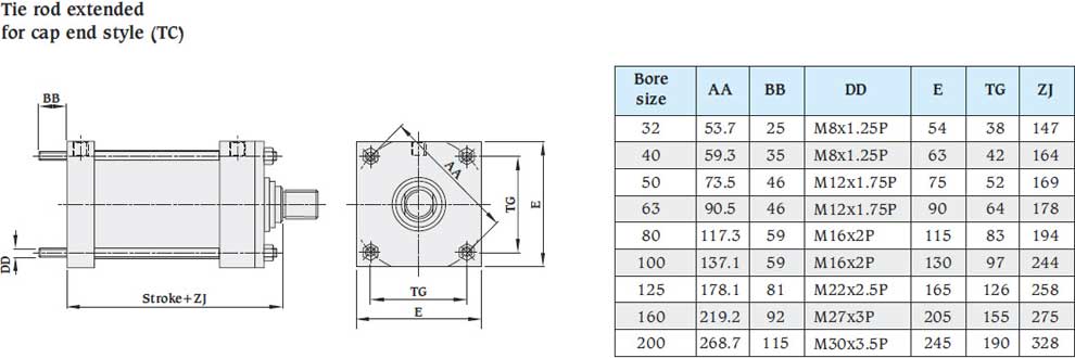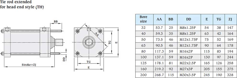 • Standard construction, square head, tie rod design• 10 standard mounting styles available