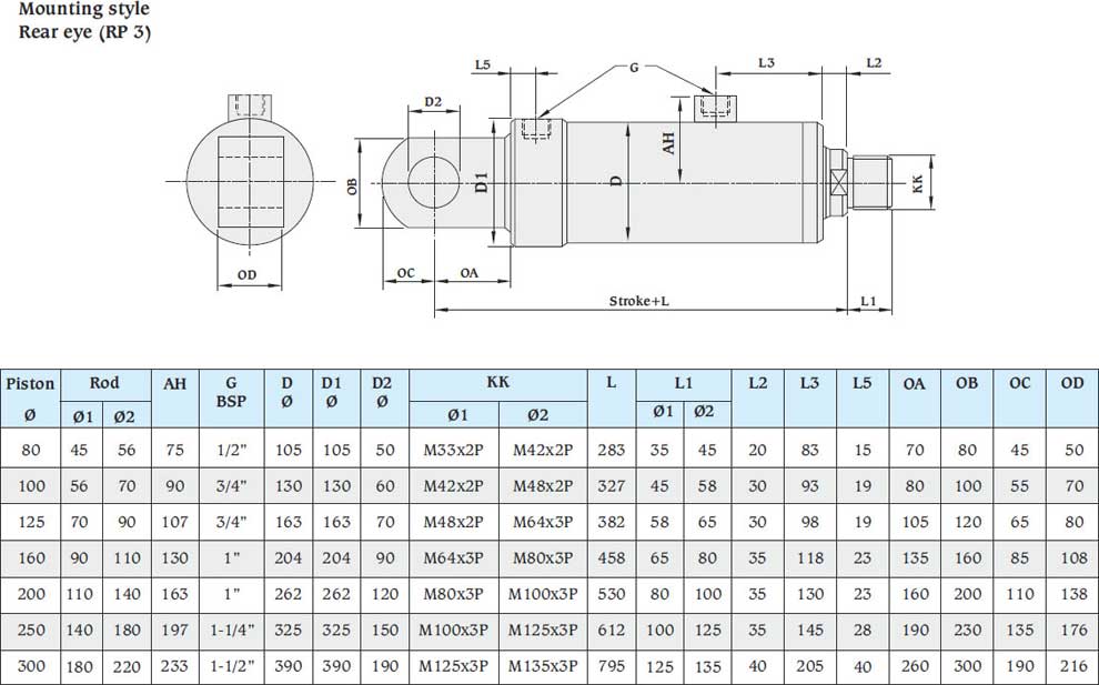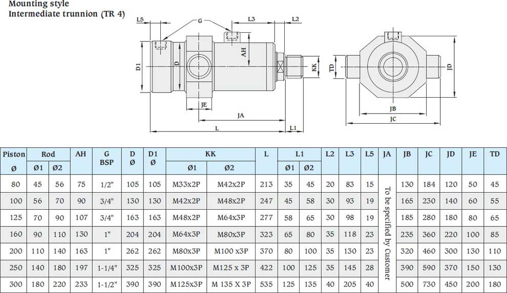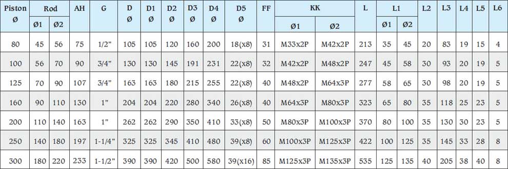 • 5 Standard mounting styles• Provision for smaller as well as bigger rod diameter for each bore size
